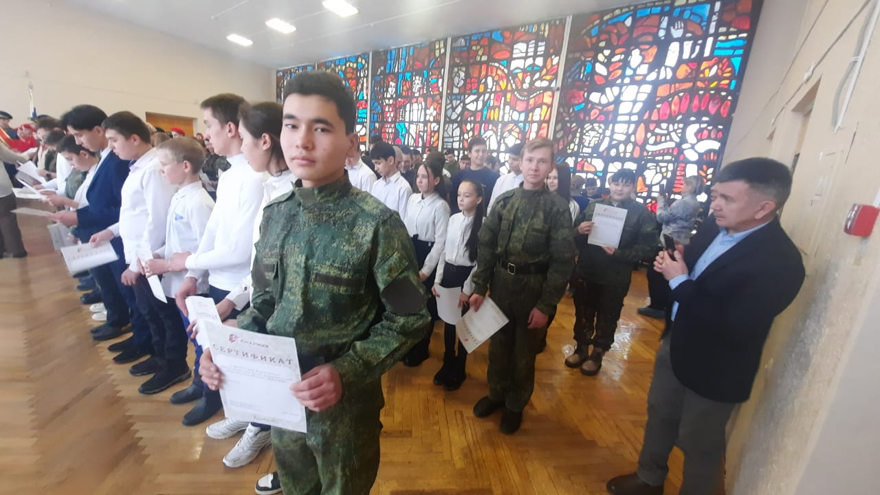 Каждому юнармейцу выпала честь принести торжественную клятву: всегда быть верным своему Отечеству, соблюдать устав «ЮНАРМИИ», следовать традициям доблести, отваги и товарищеской взаимовыручки, защищать слабых, стремиться к победам в учебе и спорте, чтить память героев. В знак принятия в ряды Движения каждый участник получил сертификат.