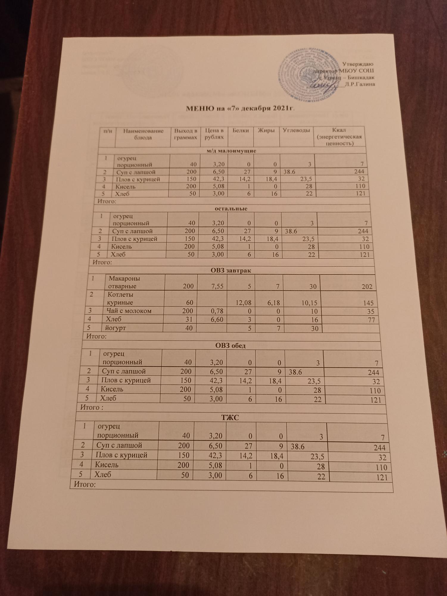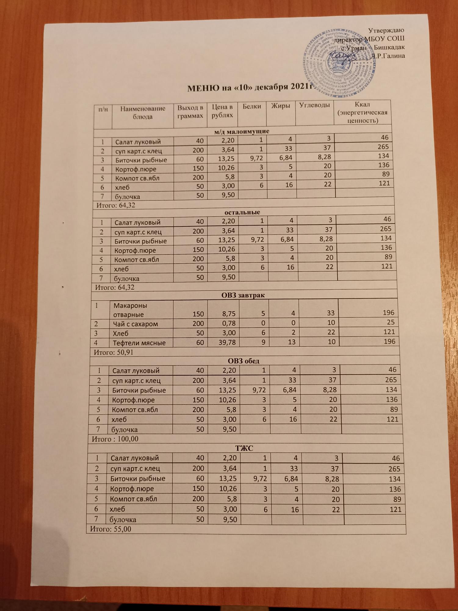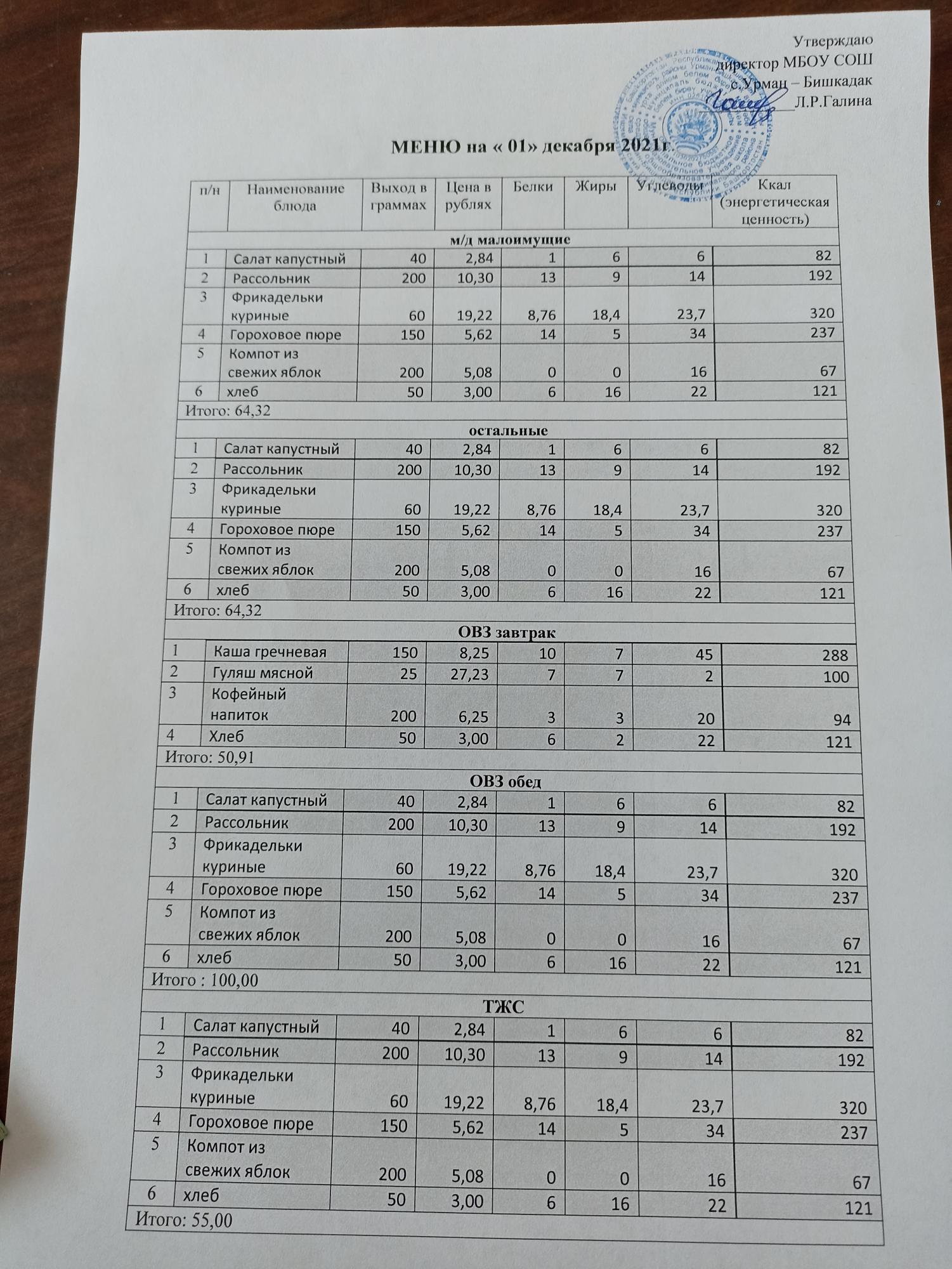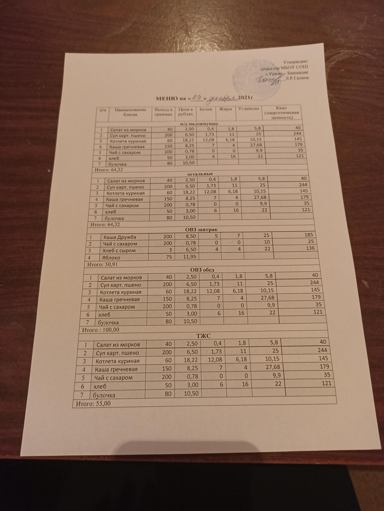 Контрольное блюдо
