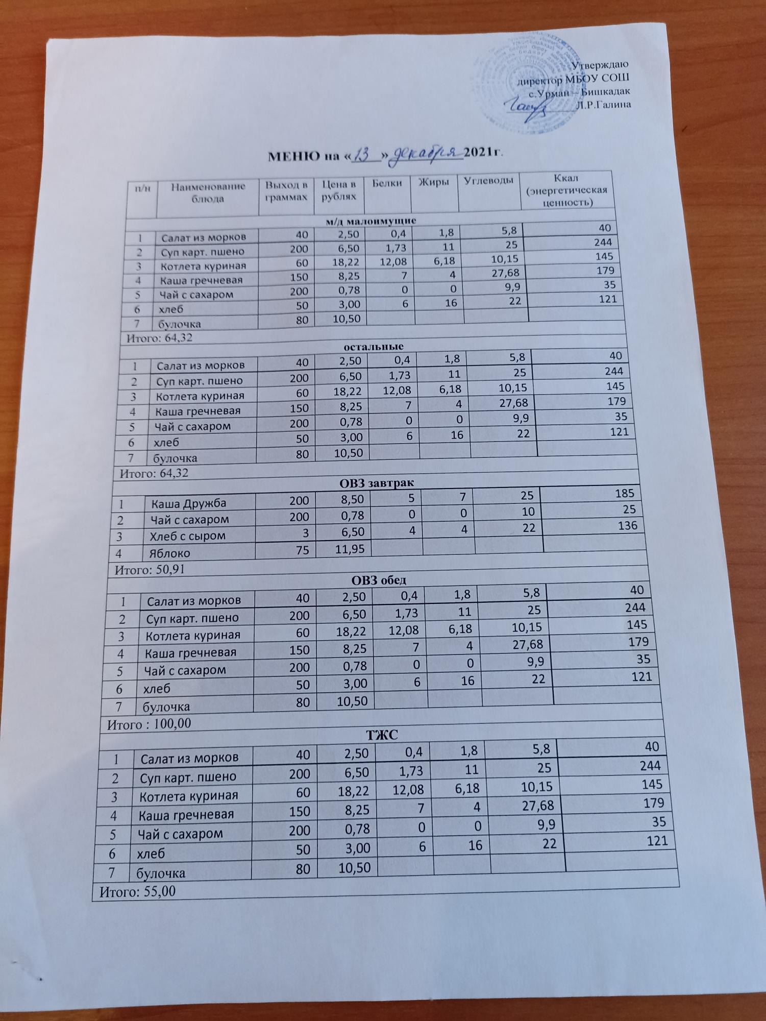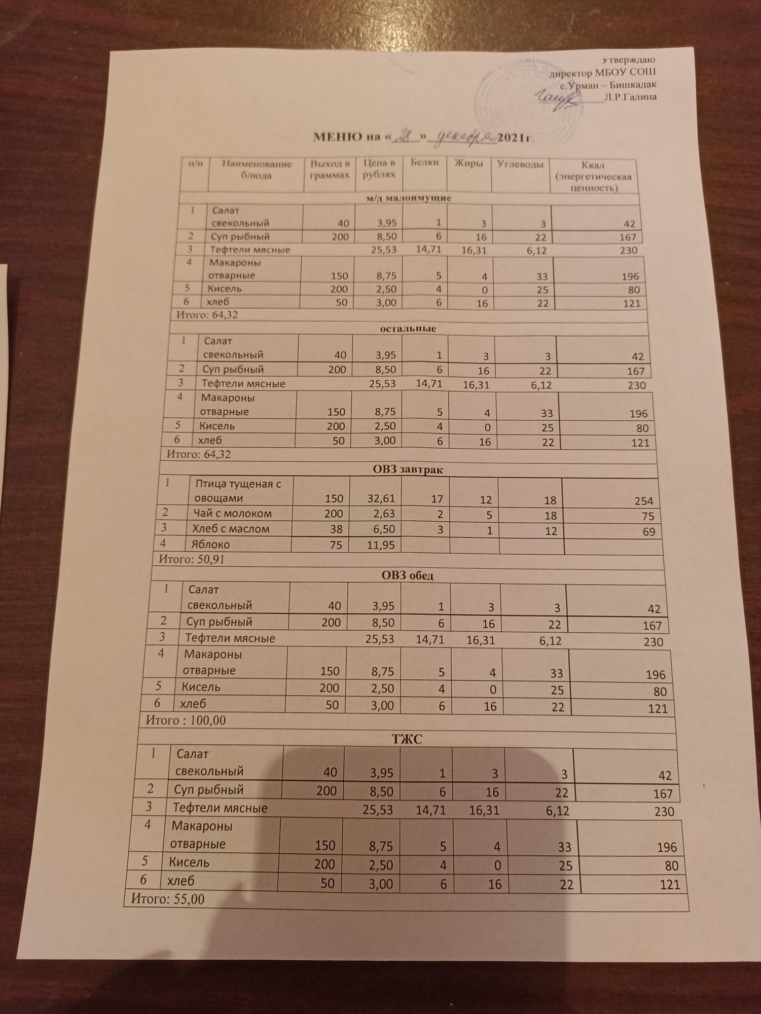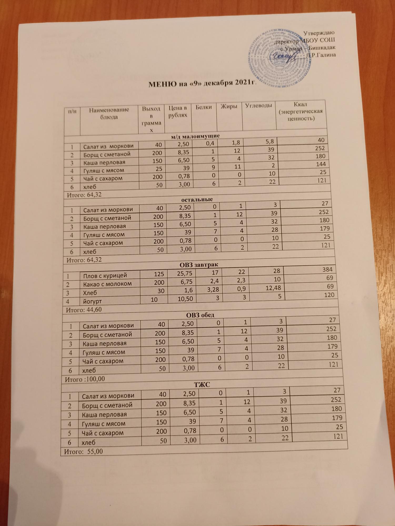 Контрольное блюдо