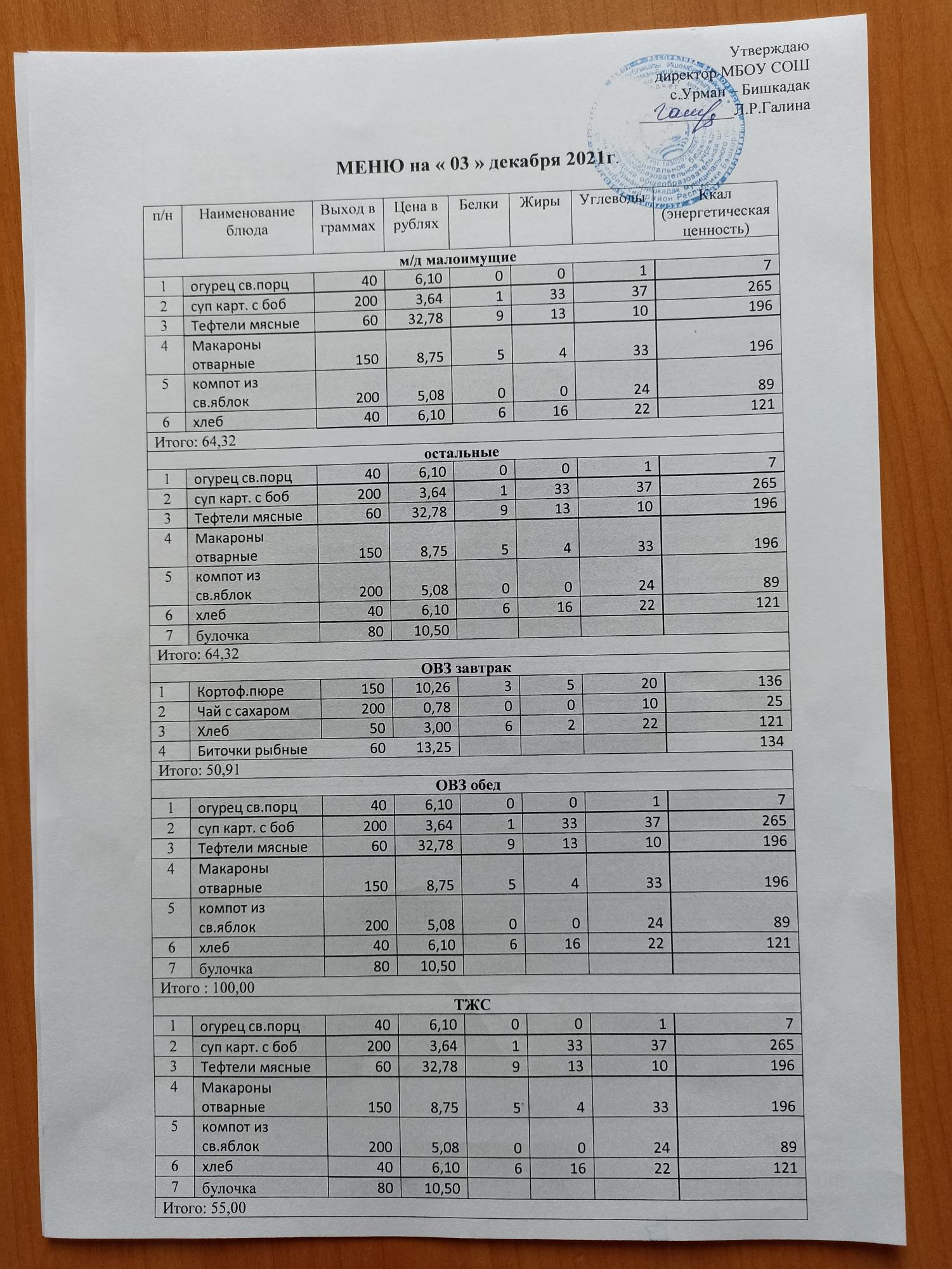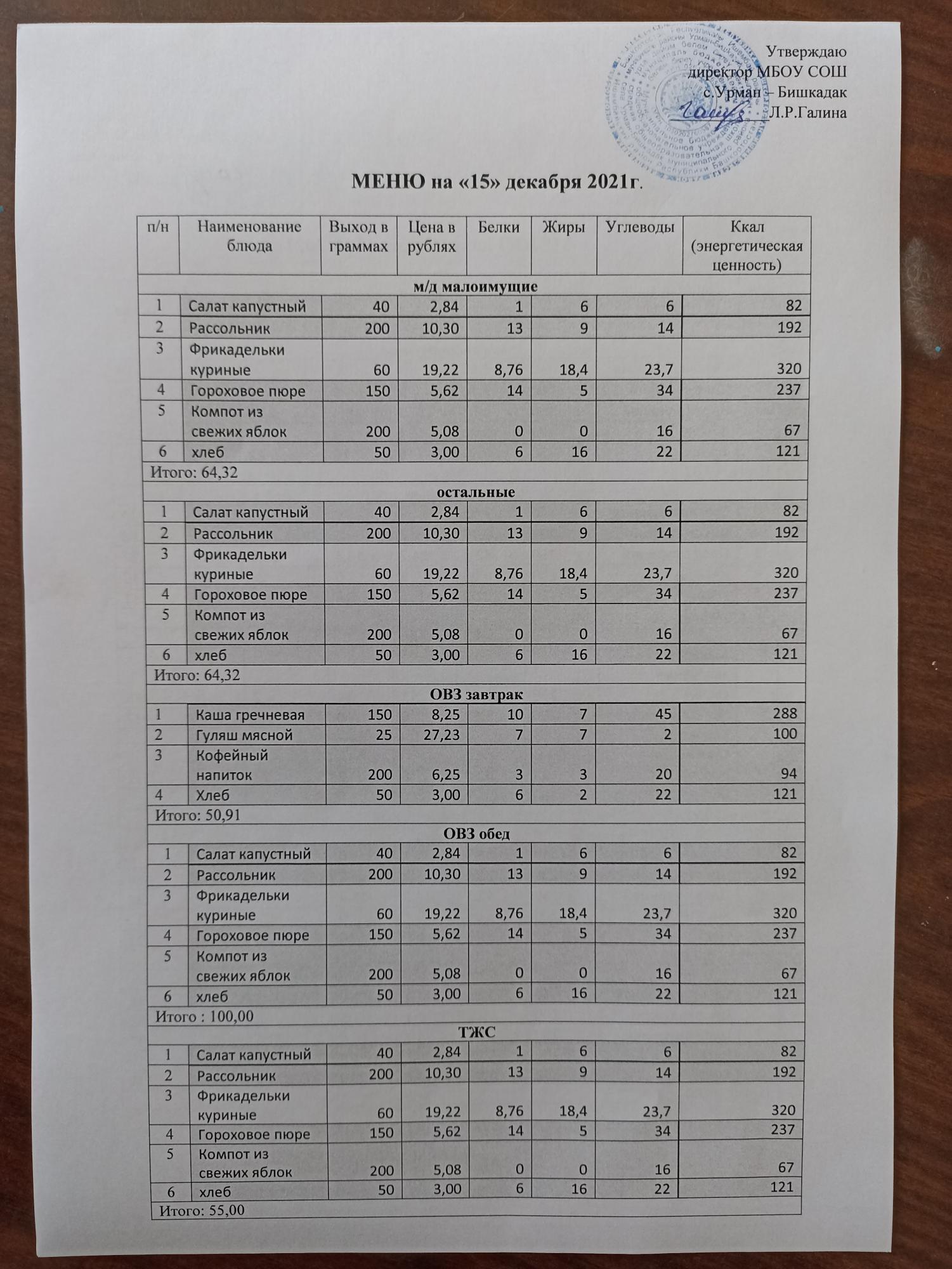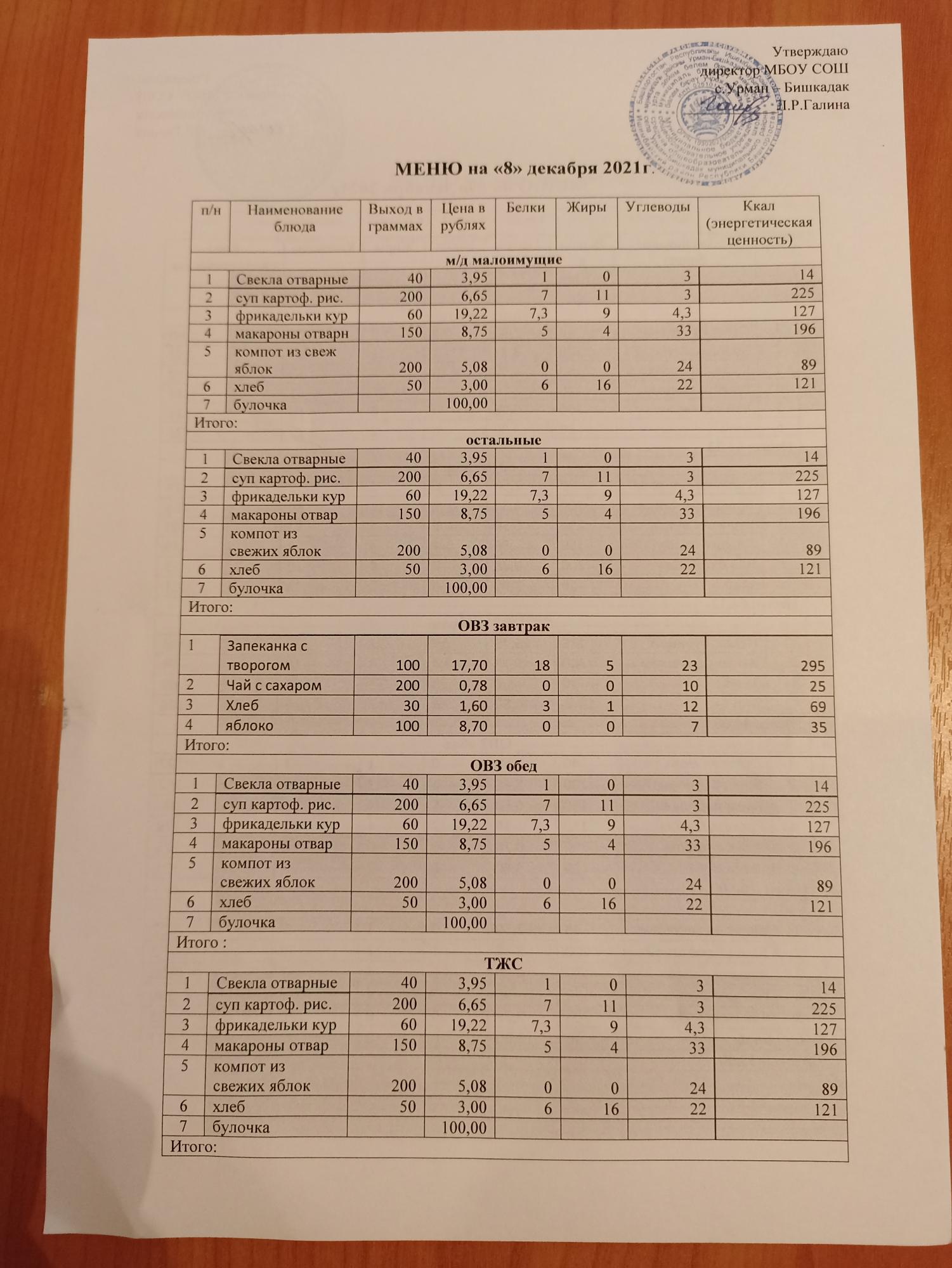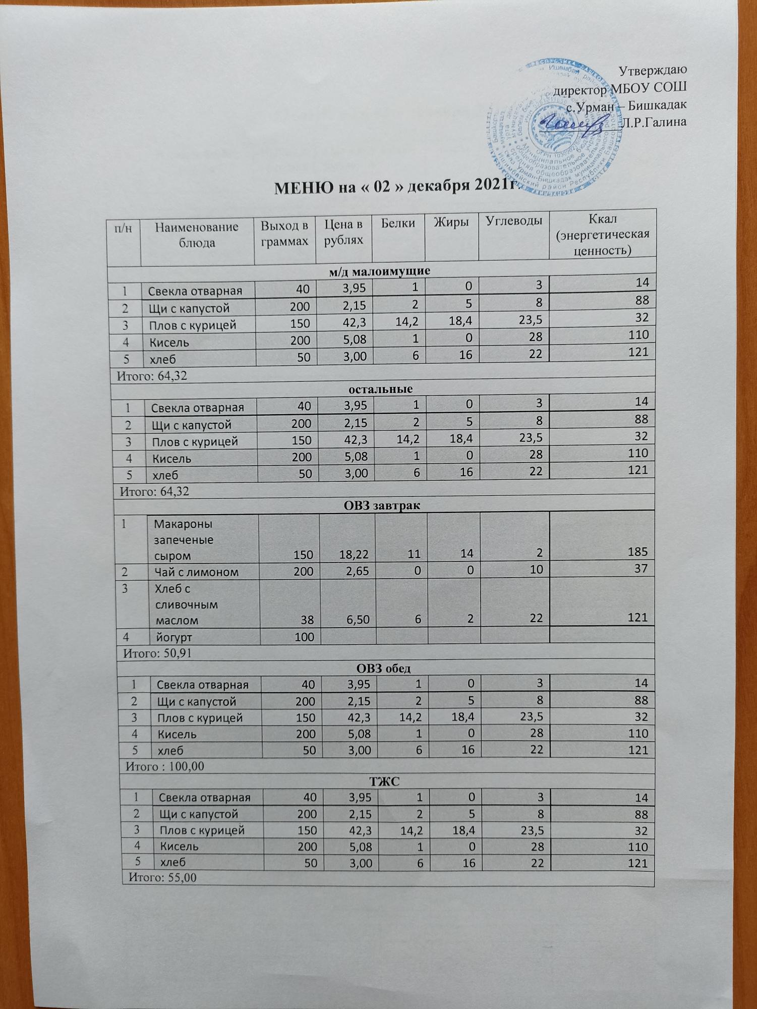 Контрольное блюдо